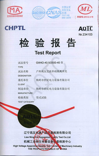 戶外高壓交流隔離開關(guān)檢驗(yàn)報(bào)告