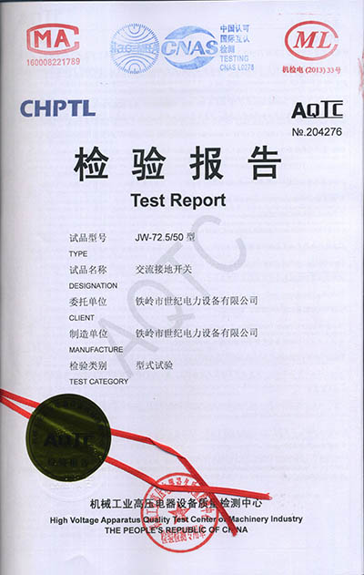 交流接地開(kāi)關(guān)檢驗(yàn)報(bào)告