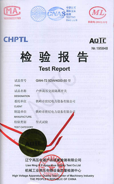 戶外高壓交流隔離開關(guān)檢驗報告