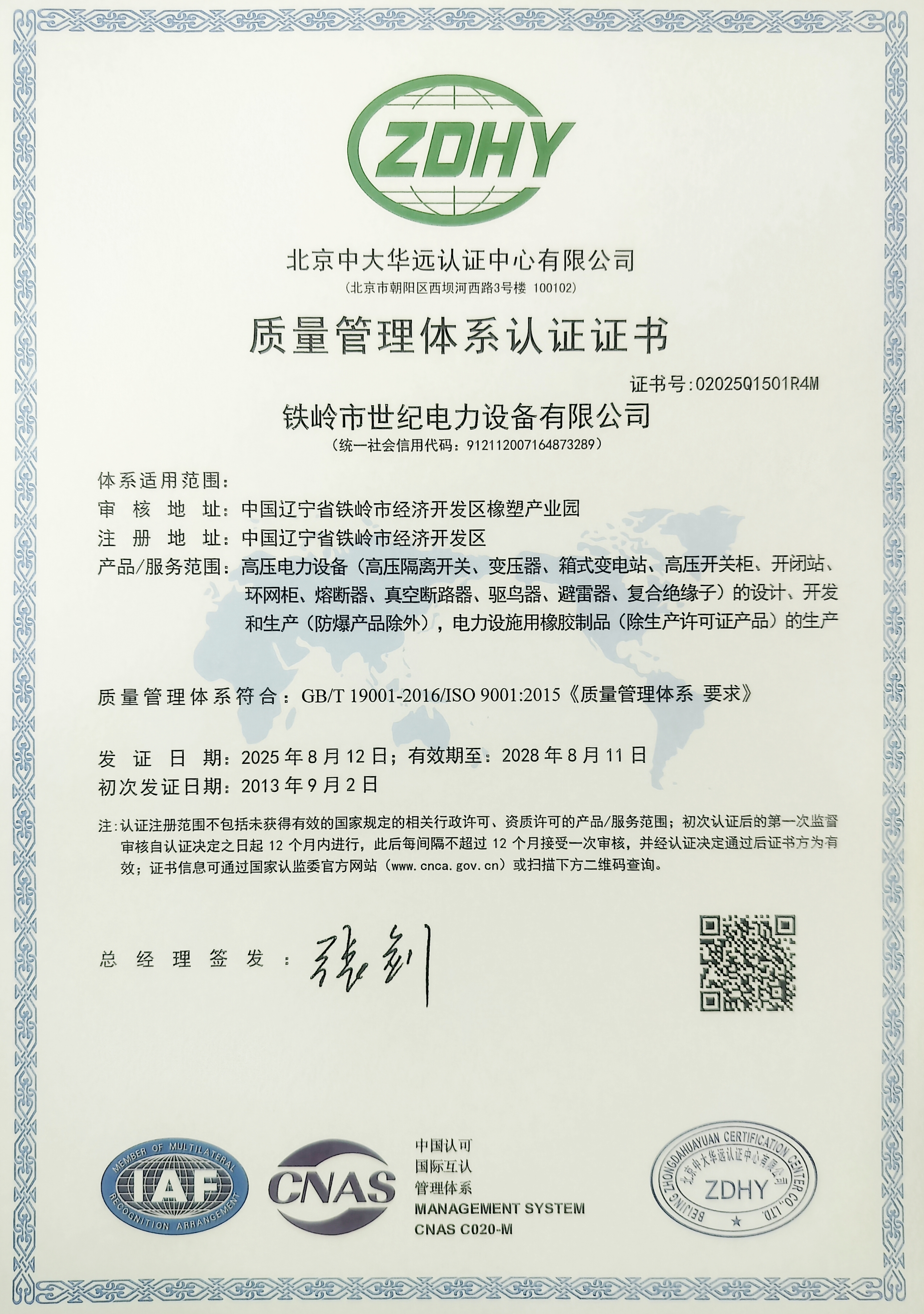 質(zhì)量管理體系認(rèn)證證書